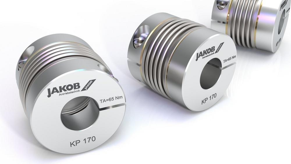 Die Metallbalgkupplung der Reihe KP mit 4-welligem Balg und zwei radialen Klemmnaben ist eine Version mit kurzer Baulänge im JAKOB-Kupplungsprogramm. Dadurch eignet sie sich besonders für Anwendungen mit minimalen Wellenabständen und begrenzten Einbauverhältnissen. Zudem sind die sehr hohe Torsionssteife und die montagefreundliche Klemmnabenausführung erwähnenswert. Ein niedriges Trägheitsmoment sowie gute Werte für die zulässigen Wellenversätze und Rückstellkräfte runden das Gesamtpaket ab.