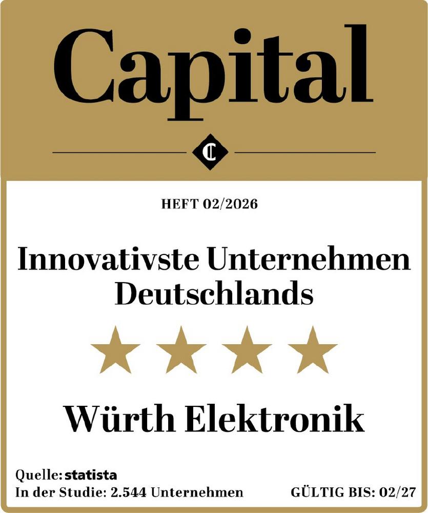 In der renommierten Studie des Wirtschaftsmagazins Capital und des Statistikportals Statista wurde Würth Elektronik erneut mit vier Sternen ausgezeichnet. Für die aktuelle Studie bewerteten 2785 Innovationsfachleute insgesamt mehrere tausend Unternehmen aus 20 Branchen. 503 Unternehmen wurden in diesem Jahr in die Liste der „Innovativsten Unternehmen Deutschlands“ aufgenommen. Die Auszeichnung basiert auf einer umfassenden Beurteilung von Produkt- und Dienstleistungsinnovationen, Prozessen sowie Kultur- und Sozialinnovationen.