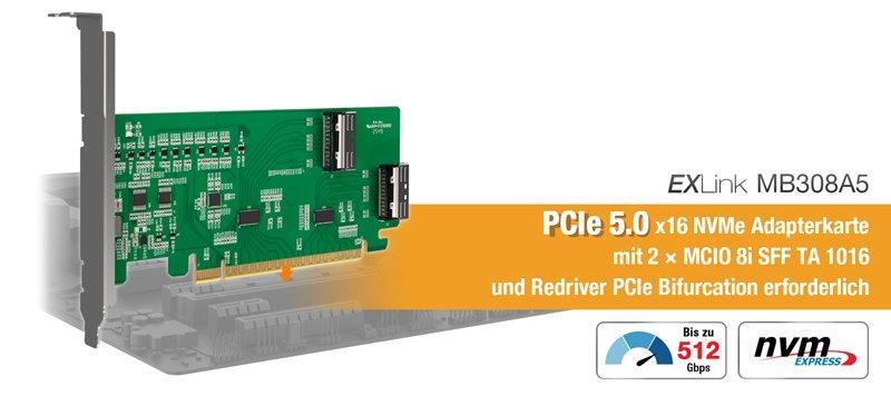 PCIe 5.0 x16 Lane Bifurcation für Multi-Drive NVMe Topologien