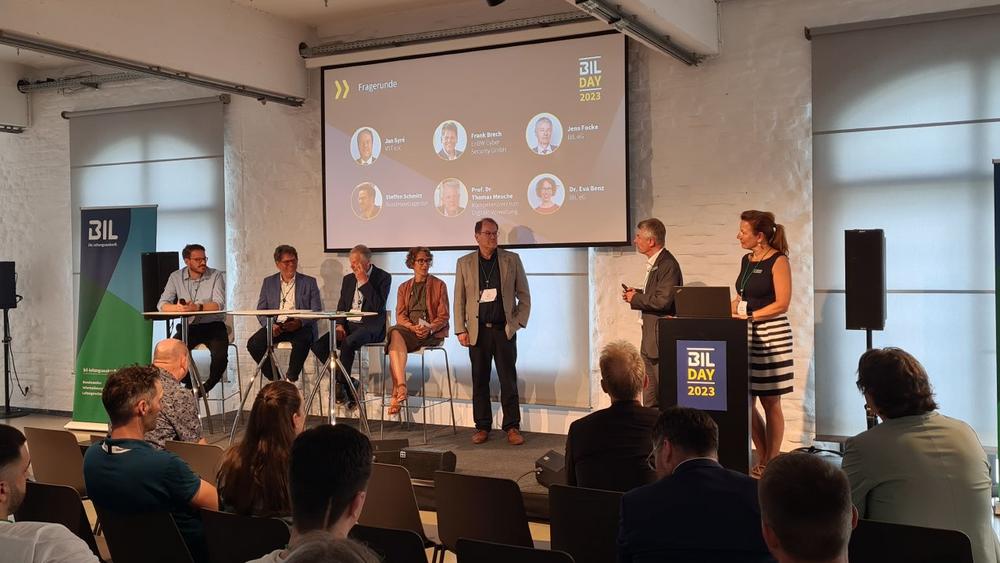 Das Vortrags-Programm umfasste die Themengebiete Breitbandausbau, Regelwerk und Gesetzgebung beim Versorgungsnetzausbau, Cyber-Sicherheit, digitale Verwaltung und Schadensstatistik. Die Keynote von BUGLAS-Geschäftsführer Wolfgang Heer beschrieb die Situation des dynamischen Ausbaus der deutschen Kommunikationsnetze. Die energiepolitischen Anforderungen und Regelwerksinhalte beschrieb Frank Dietzsch aus Sicht des DVGW, bevor Heike Böhmer als Leiterin des Instituts für Bauforschung e.V. die Inhalte des aktuell erschienenen VHV Schadensbericht Tiefbau 2022/23 vorstellte. Dieser ist unter Mitwirkung von u.a. der BIL eG entstanden und als e-book verfügbar. Unter den namenhaften Vortragenden fanden sich weiterhin die Bundesnetzagentur (Referatsleiter Zentrale Informationsstelle des Bundes Steffen Schmitt) sowie Vertreter der Forschung zu verwandten Themen (Prof. Dr. Thomas Meuche, Leiter Kompetenzzentrum Digitale Verwaltung). Das aktuelle Thema der Cybersecurity wurde von Frank Brech, Geschäftsführer EnBW Cyber Security beleuchtet. Die seitens der BIL eG gemeinsam mit dem VST-KRITIS e.V. erarbeiteten Kooperationsideen wurden von Dr. Eva Benz (BIL eG) und Jan Syré (VST) vorgetragen.
